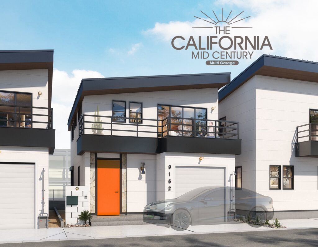 ミッドセンチュリーデザインのガレージハウス。