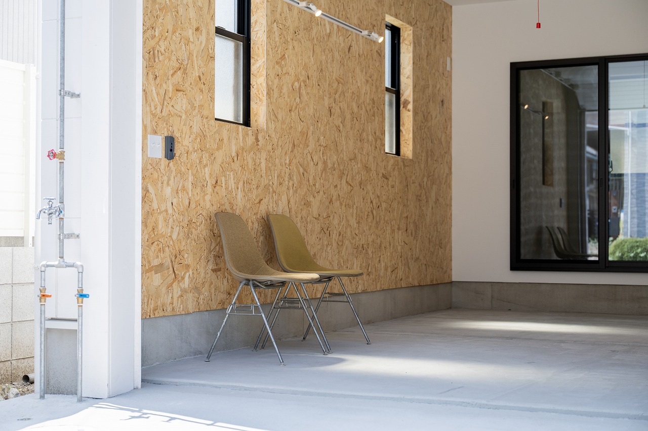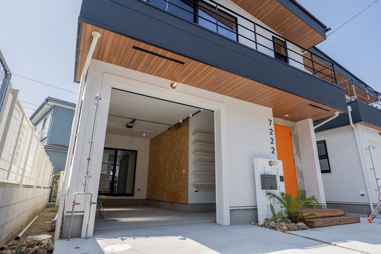ミッドセンチュリーデザインのガレージハウス。