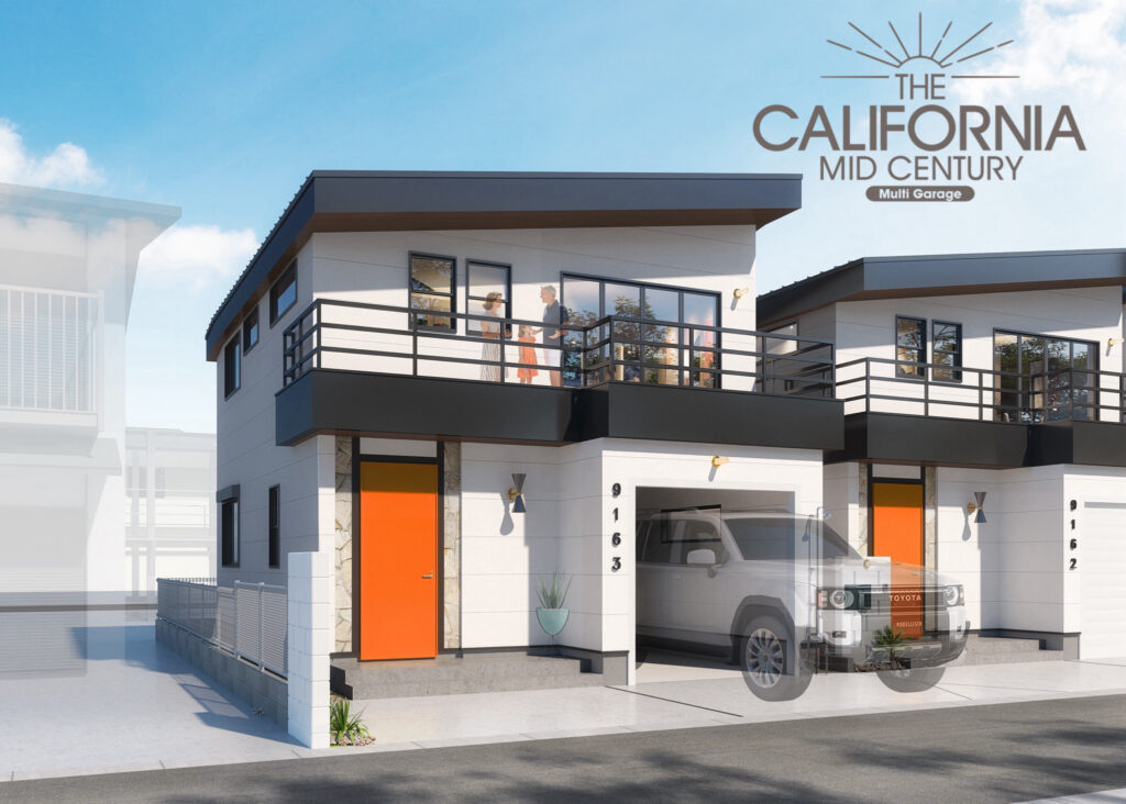 ミッドセンチュリーデザインのガレージハウス。